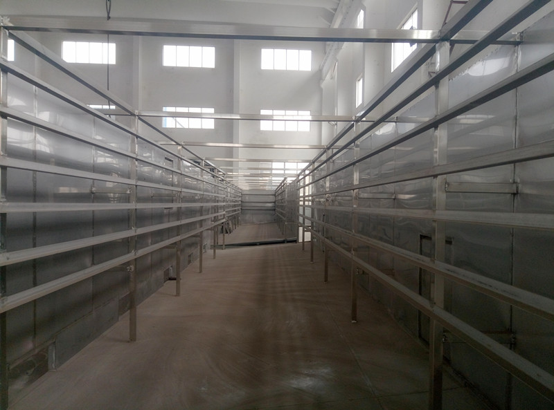 物料由加料器均匀地铺在网带上,网带一般采用12-60目不锈钢丝网,由传动装置拖动在干燥机内移动。干燥机由若干单元组成,每一单元热风独立循环,部分尾气由专门排湿风机排出,废气由调节阀控制,热气由下往上或由上往下穿过铺满物料的网带完成热量与质量传递的进程,带走物料水份。网带缓慢移动,运行速度可根据物料温度自由调节,干燥后的成品连续落入收料器中。上下循环单元根据用户需要可灵活配备,单元数量亦可根据需要选取。